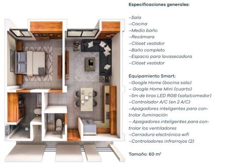 En venta depto de 1 rec, con 1 y 1/2 baño y vestidor, de 60m2, ubicado en col Buenavista, rodeado de colegios, parada de autobuses, universidades, y cercano a la zona turistica de Mérida.