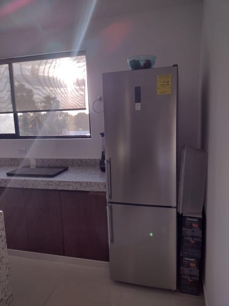 El departamento cuenta con calentador (boiler ) electrico, lamparas, aire acondicionado inverter, mosquiteros en todas las ventanas, ventiladores de techo, persiana en ventanal de la cocina ( que tiene vista hacia Altabrisa ).