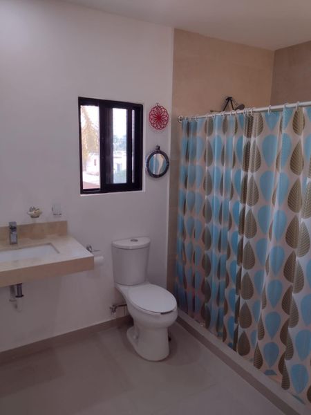 Amplio baño con gran regadera, lavabo completo, área de lavandería con lava secadora marca LG.