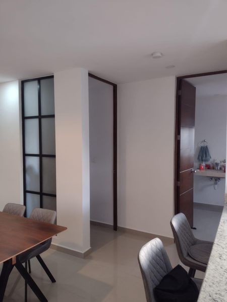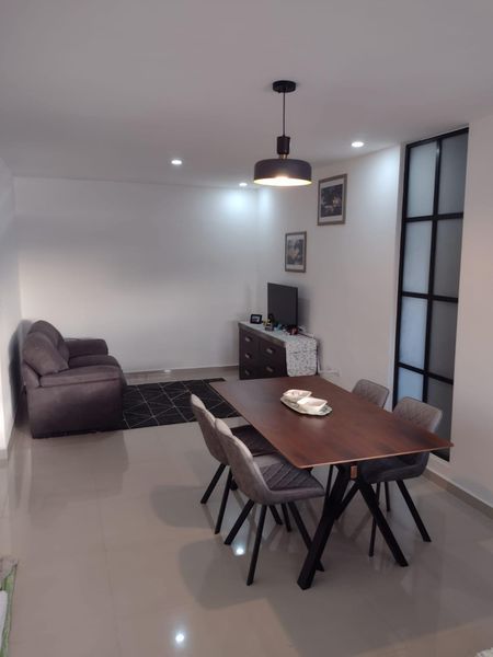 Hermoso, equipado , amueblado y decorado departamento en edificio en el norte de la ciudad de Mérida ( Col. Maya ). Departamento de 64 m2 que cuenta con amplia sala con sofá. televisor, mueble cajonera con 6 cajones, comedor de madera para 4 personas con sus sillas correspondientes, abanico de techo.