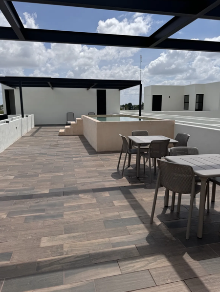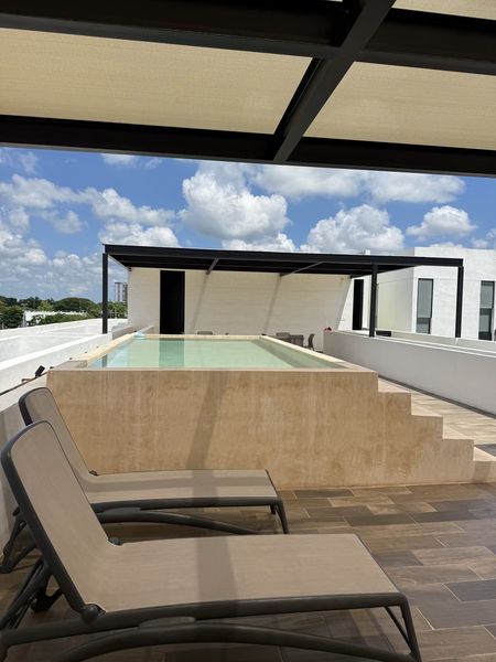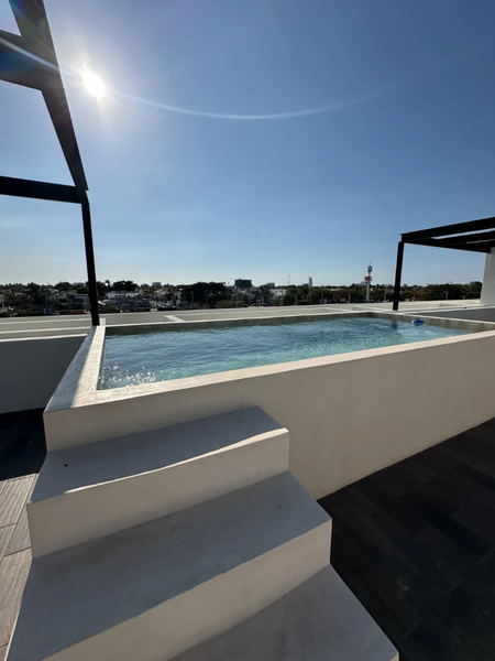 Rooftop con amplia terraza, camastros, baños y Piscina