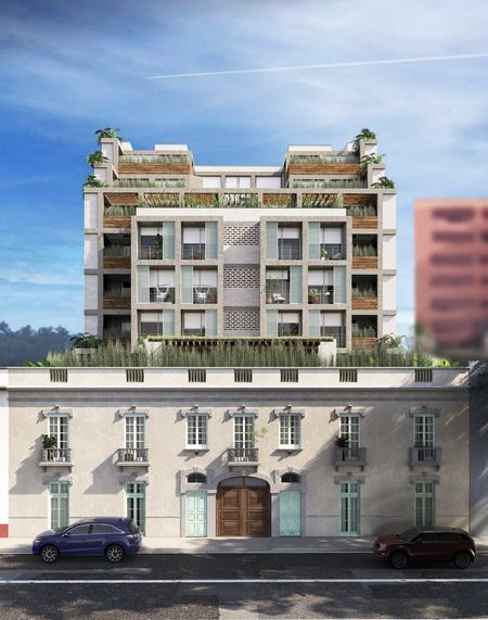 Apantla contará con 4 locales comerciales en PB, 6 departamentos en casona catalogada desde 52m2 a 110m2 y 44 departamentos en el edificio nuevo desde 55m2 a 95m2.