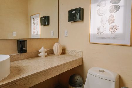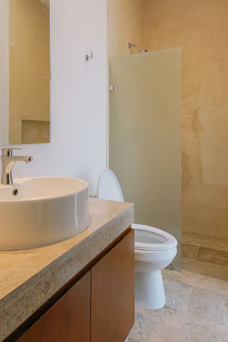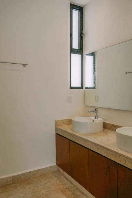 • Muebles bajo cubierta en baños con madera triplay de caobilla.