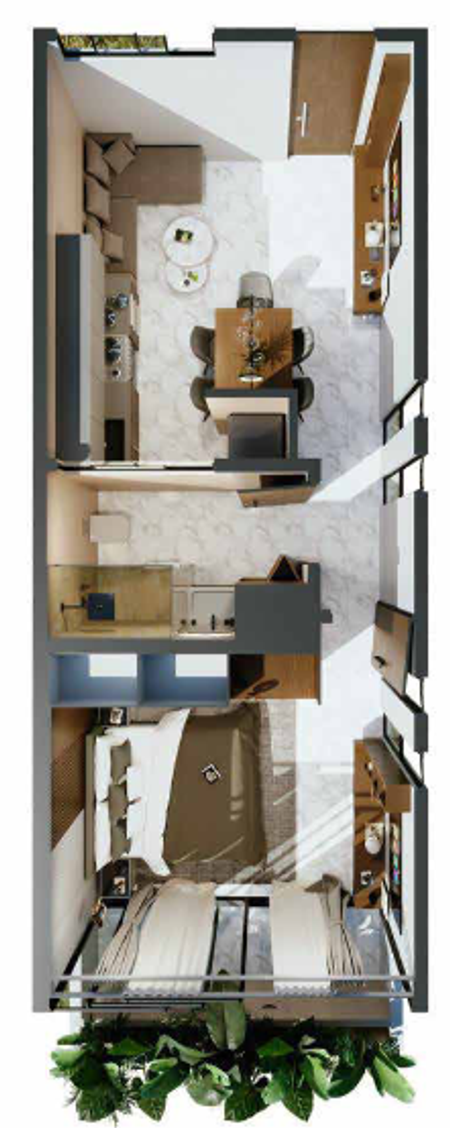 - 1 Recamara, - Sala/Comedor, - Cocina, - Baño completo, - Zona de area de lavado.