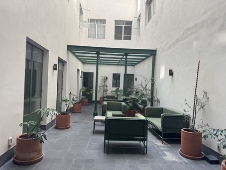 Departamento en venta completamente amueblado en el corazón de la creciente Colonia San Rafael, forma parte del desarrollo San Cosme el cual cuenta con la arquitectura original en fachada catalogada por el porfiriato.