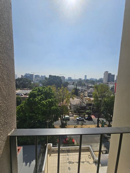 El departamento esta piso 8, con vista a Avenida Morelos, cocina integral, sala comedor con terraza, dos recamaras, medio baño y baño completo.