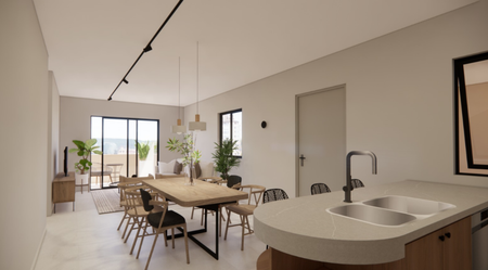 Cocina integrada a sala comedor: Espacio abierto que une la cocina y el comedor.