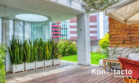 El Penthouse destaca por sus amplios espacios interiores, distribución funcional y acabados de excelente calidad. Además, cuenta con un roof garden privado con jardín de pasto natural, perfecto para disfrutar reuniones sociales, asados de fin de semana o simplemente relajarte al aire libre.