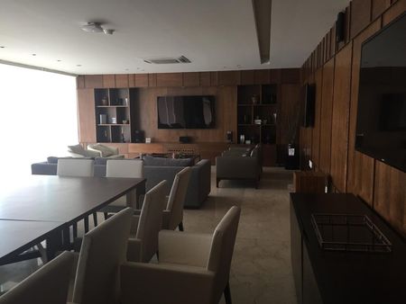 El departamento está equipado con pisos de mármol crema de marfil, cancelería anticicónica y aire acondicionado estilo VFR.