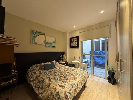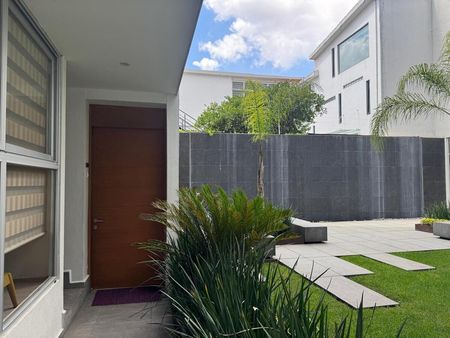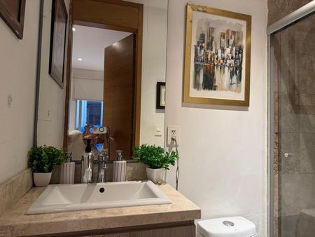 Departamento contemporáneo, interior, en planta baja frente a jardín, con acabados de lujo, de 184 m2 que incluye las terrazas privativas. El departamento ofrece un diseño que maximiza el espacio y la luz natural, ideal para familias. Cuenta con amplia sala, comedor con vistas al jardín, cocina cerrada con barra de granito, alacena, cuarto de lavado dentro del departamento junto a la cocina, sala de TV, recamara principal con vestidor, baño y patio privado que proporciona mucha luz, recamara dos con baño y patio interior, recamara tres con baño y patio interior. Cuatro estacionamientos en sótano 1, E44, E45, E46 y E22.Con bodega RF-B14. Salón de eventos con baño, jardín común, gimnasio equipado. Roof Garden semi techado con asador y tarja de servicio.