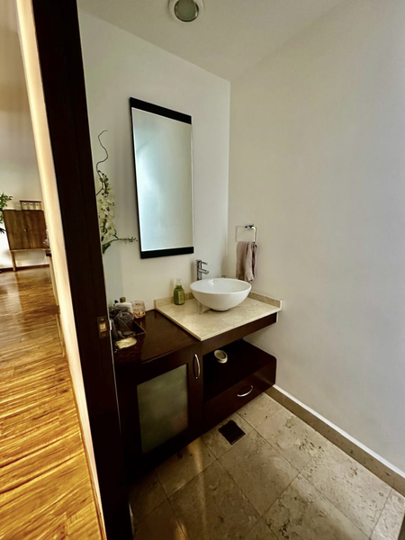 Cuenta con 2 baños completos y 3 medios baños (de servicio, de visitas y en el área de Roof Garden).
