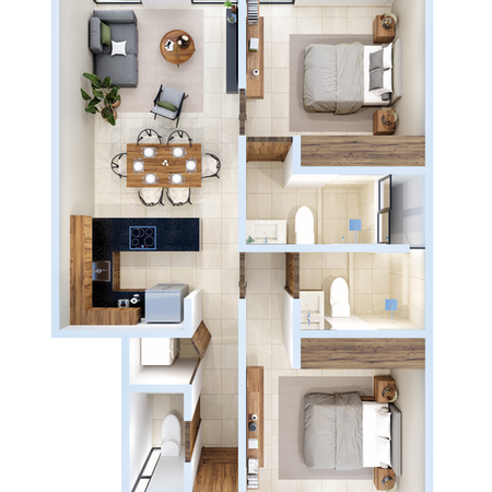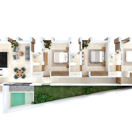 Complejo de 38 departamentos de 1 ,2 y 3 recámaras, distribuidos en dos torres de 3 y 4 niveles, una torre contará con elevador en una torre y escaleras de acceso a todos los niveles. Ubicado en una zona de accesos rápidos conectividad plazas moda, universidades hospitales prestigio.