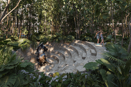 El patio interior del parque esta inspirado en los siete punto conocidos como chakras, para lo cual ha sido diseñado para mantener un flujo de energía estable en nosotros mismos y a la vez brinda espacio y tiempo para practicar gratitud, reflexión y plenitud. Además ofrece un cenote, un parque de juegos. En el rooftop que es en una parte del edificio hay un espacio para sumergirse en la belleza de la selva. Por la noche, el mirador es una oportunidad para contemplar las estrellas como muchas generaciones lo han hecho antes. Habrá un gimnasio privado con todas las facilidades, servicios y equipos de primera clase para propietarios e inquilinos.