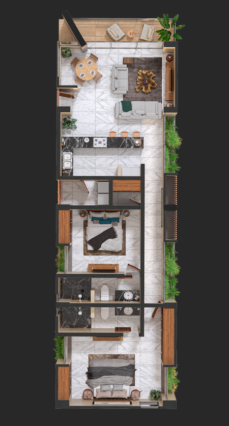 Xu’ - Elemental Habitat, un desarrollo hecho por la sinergia de diferentes empresas expertas en el sector inmobiliario, que siempre te brindará una estructura de construcción innovadora de alta resistencia, gran valor visual y un servicio de administración de rentas que asegura que tu única preocupación sean tus fechas de cobro.