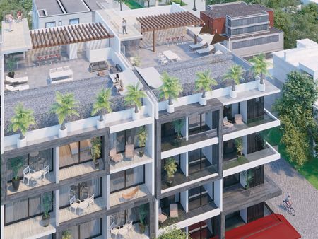 Con asombrosas vistas al mar Caribe, sin duda alguna esta nueva construcción en Playa del Carmen le brindará a usted y su familia años de diversión y comprobará que es una excelente inversión. La terraza en el techo cuenta con una alberca privada, bar y área para relajarse. Tendrá mucho espacio para tomar el sol o relajarse y disfrutar junto con sus invitados de una parrillada.