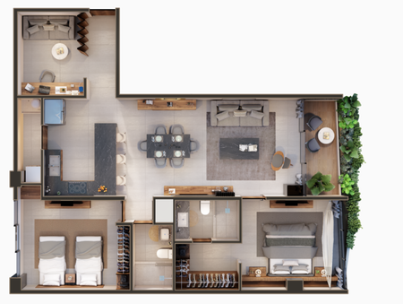 *Las imágenes mostradas son con fines ilustrativos, puede haber cambios en la propiedad, de manera que solo sirven como referencia y pueden variar, así como los muebles y equipamiento son únicamente representativos para ambientar los espacios y no están incluidos.