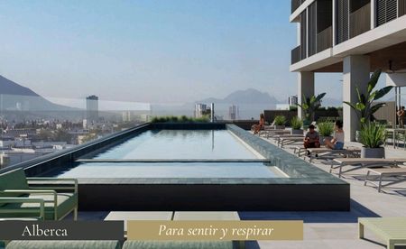 En una excelente ubicacion y elegacia contemporanea en el Centro Monterrey, una nueva oportunidad de inversion, de 1, 2 y 3 Recamaras, Torre de 26 Niveles, y 157 Departamentos, 4 Suites, cuenta con 15 Amenidades y servicios con vistas 360 grados a las montañas, calidad superior en acabados y fachada ventilada con sistema EIFS (Sistema de aislamiento termico) , modelo de negocio amigable para corta estancia y servicio de Administracion de Rentas.