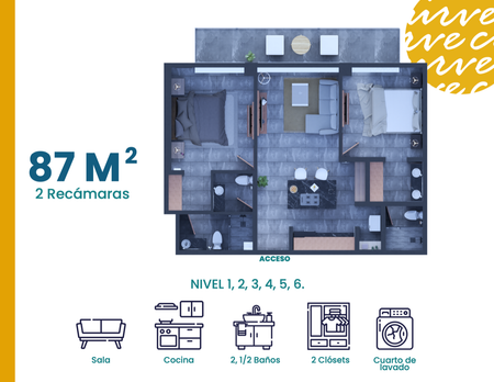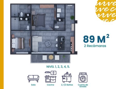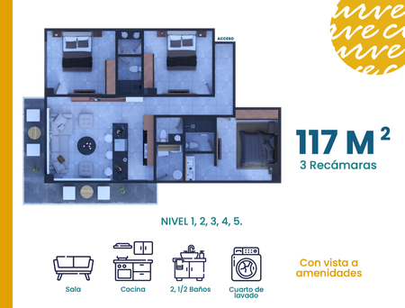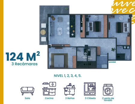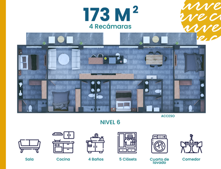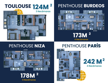 Este desarrollo cuenta con 4 torres dentro del condominio y 8 tipos de departamentos.