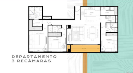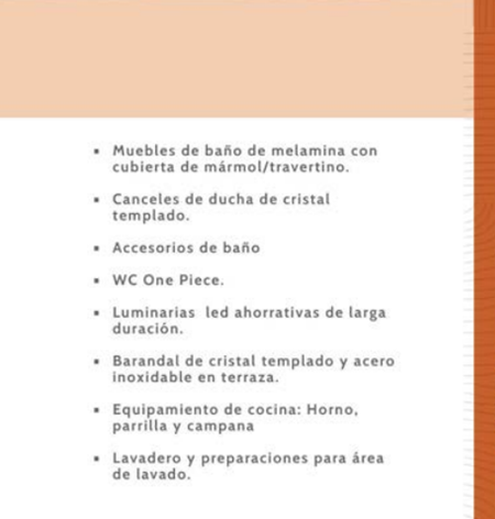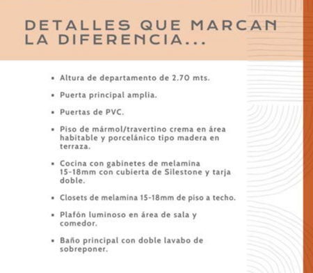 3 Recámara, vestidor, 3 baño y medio, sala, comedor, terraza, cocina integral, centro de lavado, closet de blancos y 2 estacionamientos techados.