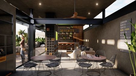 Además de contar con amenidades como un hotel en donde encontrarán servicio de lobby, concierge, área de co-working con mesa grande, un servicio de cafetería donde podrán pedir su desayuno. Un roof top con gimnasio, piscina, área de bar con pantallas y mesas para disfrutar .