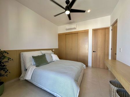 Estos departamentos de 2 recámaras destacan por su amplitud y distribución inteligente, perfectos para quienes buscan confort y conveniencia. Disfruta de estacionamiento subterráneo, elevador, gimnasio y áreas comunes, que incluyen camastros, lunch area y un jacuzzi en el rooftop con vistas espectaculares.