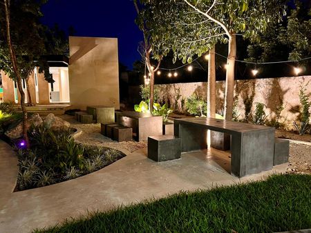 - Fachada con pasta tipo chukum y cerámica tipo madera.