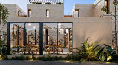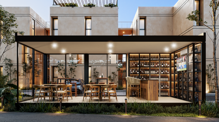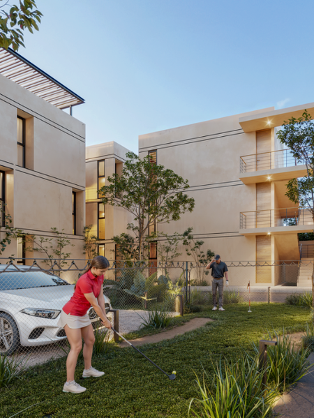 Para el disfrute de sus residentes, el complejo cuenta con un sports bar, ideal para socializar; un green de golf, perfecto para la práctica y recreación; una terraza social, diseñada para reuniones; una terraza con alberca, enfocada en el descanso, y una terraza con zona zen, pensada para la relajación.