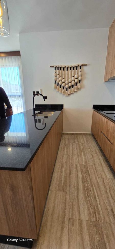 • Cocina integral con cubierta de granito, parrilla de inducción de dos quemadores y campana extractora