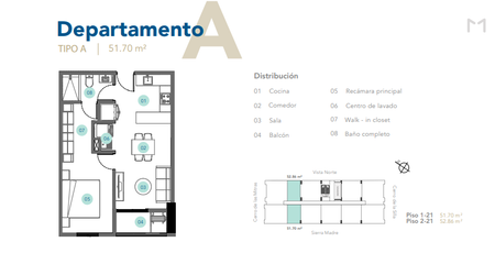 1 recámara: Tipo A-N: 52.86 m2 desde $4,385,227