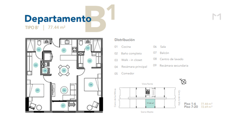 Tipo B1: 72.6 6 m2 desde $5,788,605