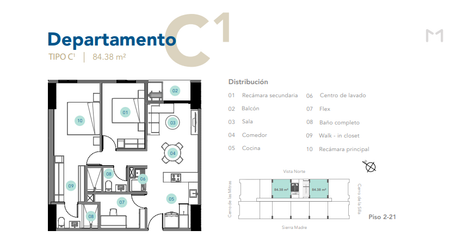 Tipo C1: 84.74 m2 desde $6,013,494