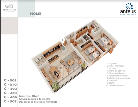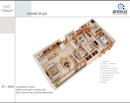 Distrito Cube se conforma de 3 Torres, en total 110 departamentos con 186 estacionamientos y