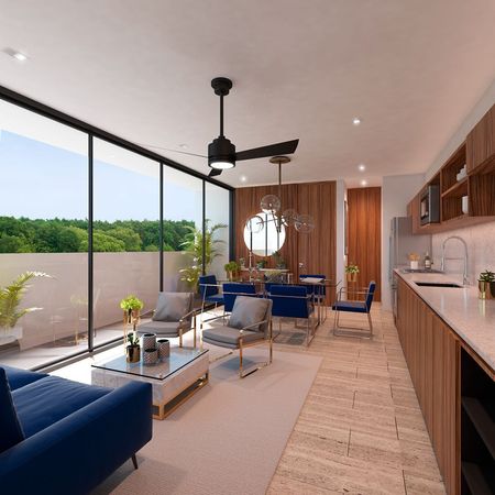 Complejo departamental dentro del periférico de tres niveles, ubicado en la mejor zona de la ciudad: la zona norte de Mérida, a unas calles de Prolongación Paseo de Montejo.