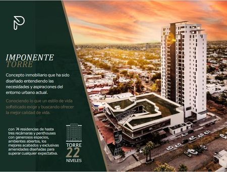 Torre de 22 niveles ubicado en la zona hotelera de Hermosillo con un total de 74 residencias de 2 y 3 recámaras.