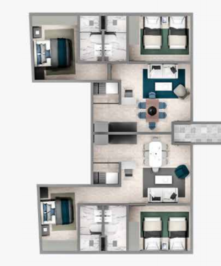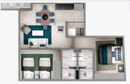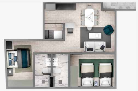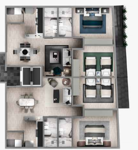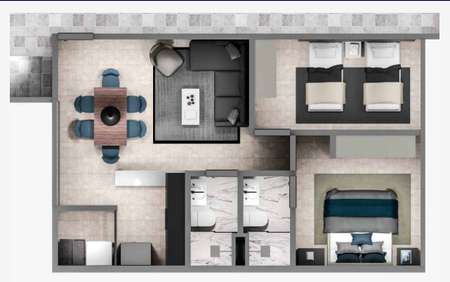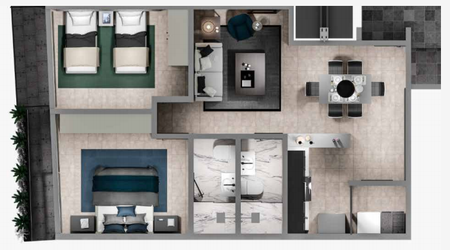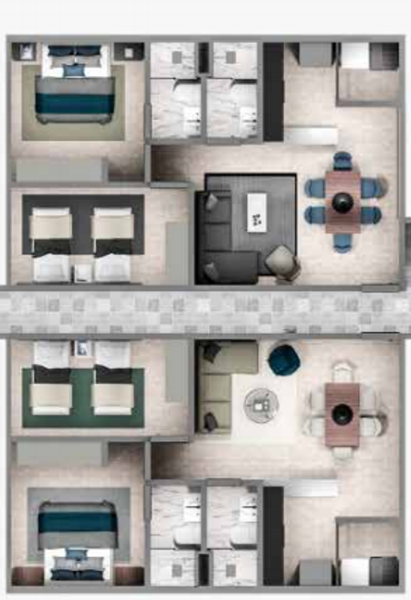 Todos cuentan con dos habitaciones, sala, comedor, dos baños completos, cocina abierta, área de lavado, dos lugares de estacionamiento.