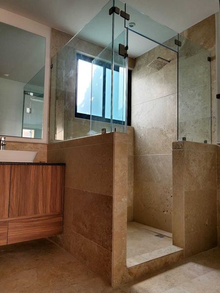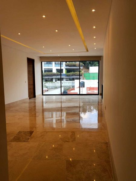 3 recámaras de buen tamaño, 2 con vestidor y baño y la tercera con closet, sala comedor, cocina integral con barra abierta, área de lavado y cuarto de servicio. 2 lugares de estacionamiento y 1 bodega.