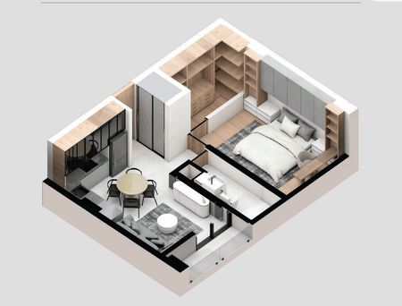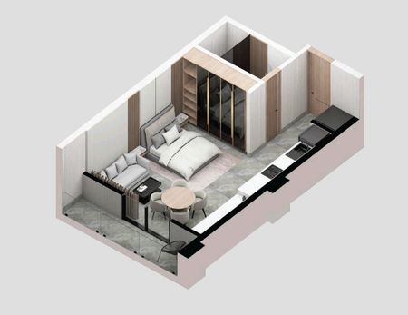 De 46 m2 es tipo Loft con Vista al Poniente, 1 Baño, Cocina, Sala-Comedor, Lavanderia y Balcon.