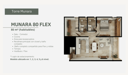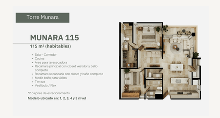 Torre Munara : Torre de 35 departamentos en 7 niveles, Munara 115, Munara 80, Munara 80 flex