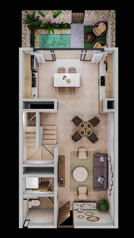 - Piscina privada en la mayoría de las unidades (no todas)