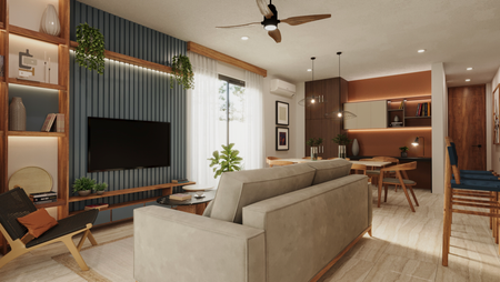 ●Equipamiento: Meseta de granito en cocina, meseta de granito en baños, apagadores inteligentes en pasillo y recámaras, cerradura digital, calentador eléctrico, cristal templado en baños con puerta, closets vestidos, gabinetes inferiores y superiores en cocina, gabinetes inferiores en baños, parrilla eléctrica de inducción, campana, espejos en baños , accesorios en baño.