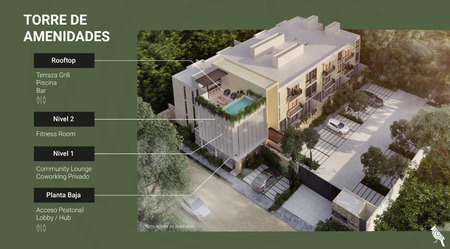 clóset de lavado, área de jardín privado o balcón y 1 cajón de estacionamiento.