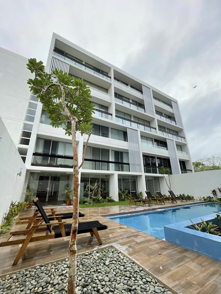 Es un desarrollo de 72 departamentos acomodadas en 2 torres gemelas que convergen en una zona de áreas comunes.