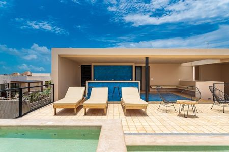 El departamento , se encuentra completamente amueblado y equipado , su amplia estancia y patio con alberca privada aseguran recuerdos memorables.