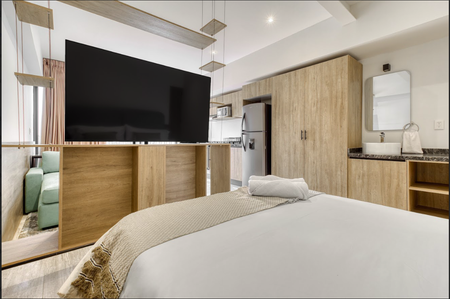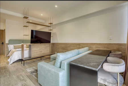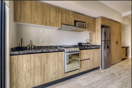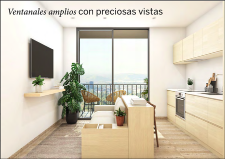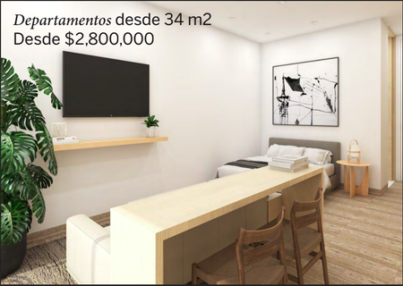 Los departamentos inician desde los 34 m² y tienen un precio desde $2,800,000, con la opción de entrega inmediata realizando un pago único de $500,000 y el saldo restante a la entrega. El proyecto ofrece acabados a elección (verde o encino).