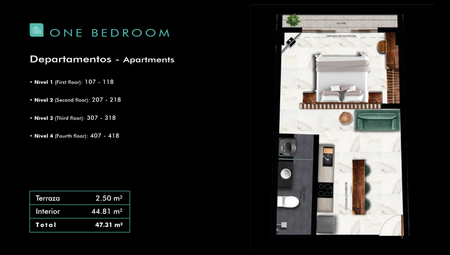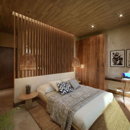 Vive la armonía entre selva y mar en espacios diseñados para el confort. Departamentos de 1 y 2 recámaras, de 45m² a 92m², totalmente equipados y listos para habitar.