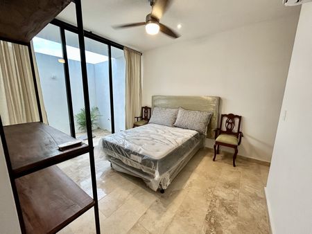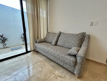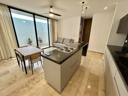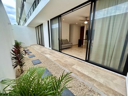 Estrena moderno Departamento Amueblado en renta. 1 Recámara, en Planta Baja con jardin privada.