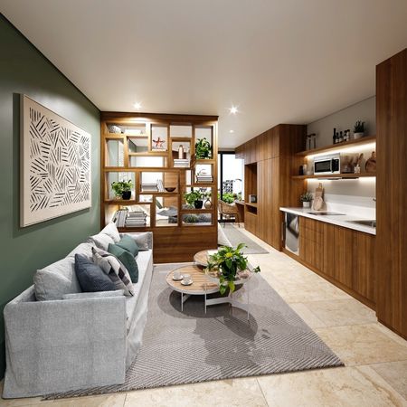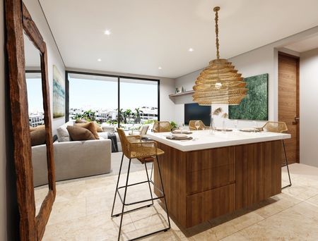 Estos nuevos estudios y departamentos de 2 habitaciones son perfectos para rentas vacacionales o como su propio hogar en el paraíso. Los estudios de 400 pies cuadrados tienen una cocineta con un refrigerador compacto, un microondas y una cocina eléctrica. Un librero divisor de ambientes separa las áreas de estar y dormir. También cuentan con amplio espacio de almacenamiento en la cocina y un armario empotrado con soporte para televisión. Las unidades de 2 habitaciones más espaciosas tienen una cocina completa con isla y un soporte para televisión empotrado en la sala de estar. Tienen un balcón o terraza privada con vistas a la ciudad. Estos condominios cuentan con pisos de cerámica y acabados de alta calidad que son duraderos y fáciles de mantener. Se ofrecen a la venta sin amueblar, pero están equipados con aire acondicionado.