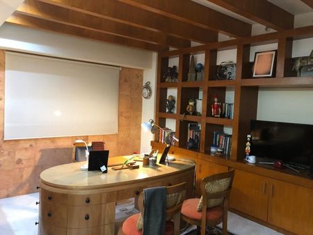 Diseñados para generar diversos ambientes. Despacho con librero de pared a pared Generando ritmo y repetición a plafón envigado Acompañado por luces led con ritmo y repetición. Con espacio de bar para jugar cartas o domino. Baño de visitas amplio y agradable