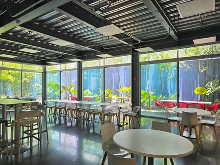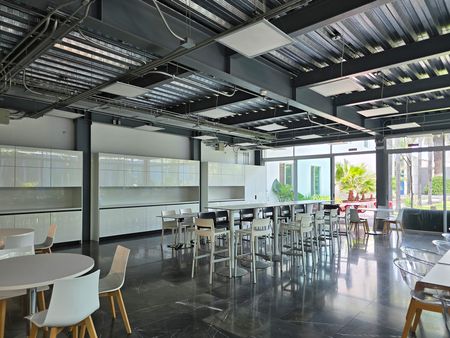 Planta Baja: recepción, caseta para control de acceso, estacionamiento con 50 cajones, varias salas de juntas (incluida una presidencial para 20 personas), comedor amplio con terraza social, cocina equipada, baños ejecutivos, oficinas privadas y áreas colaborativas.
