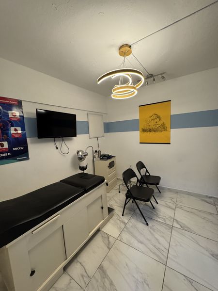 1.- Planta Baja; se encuentra una clínica con consultorios y una farmacia, además de un pasillo que da servicio para las
